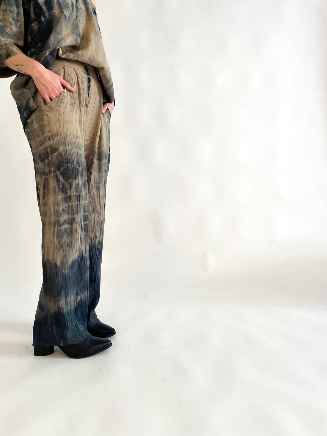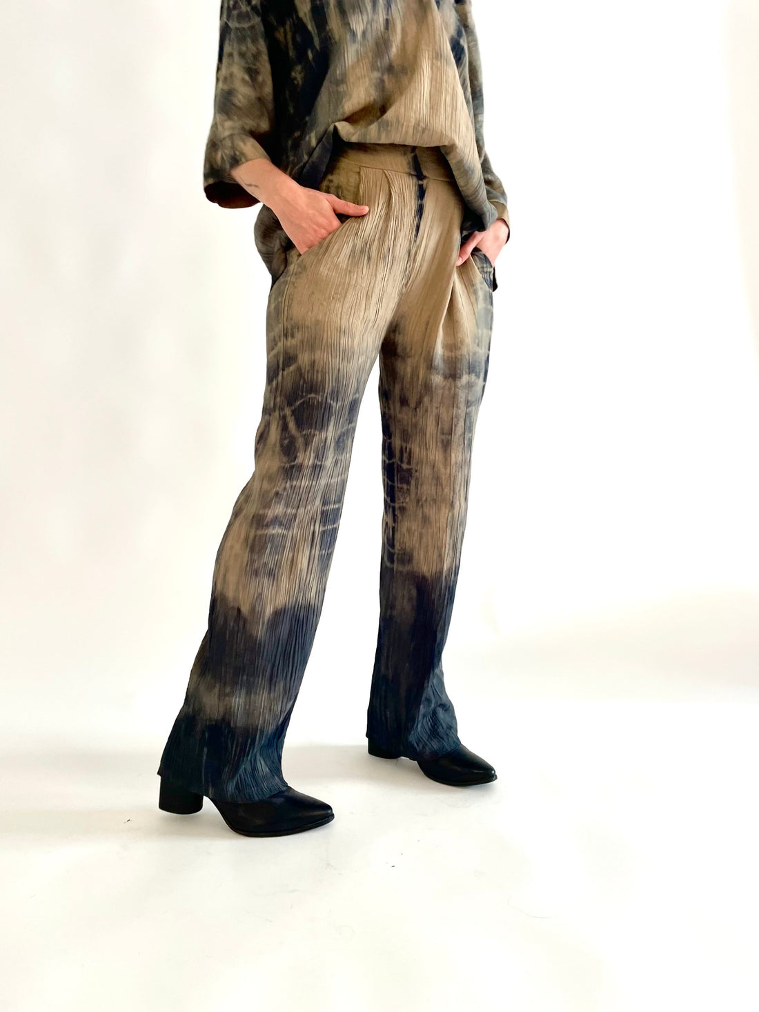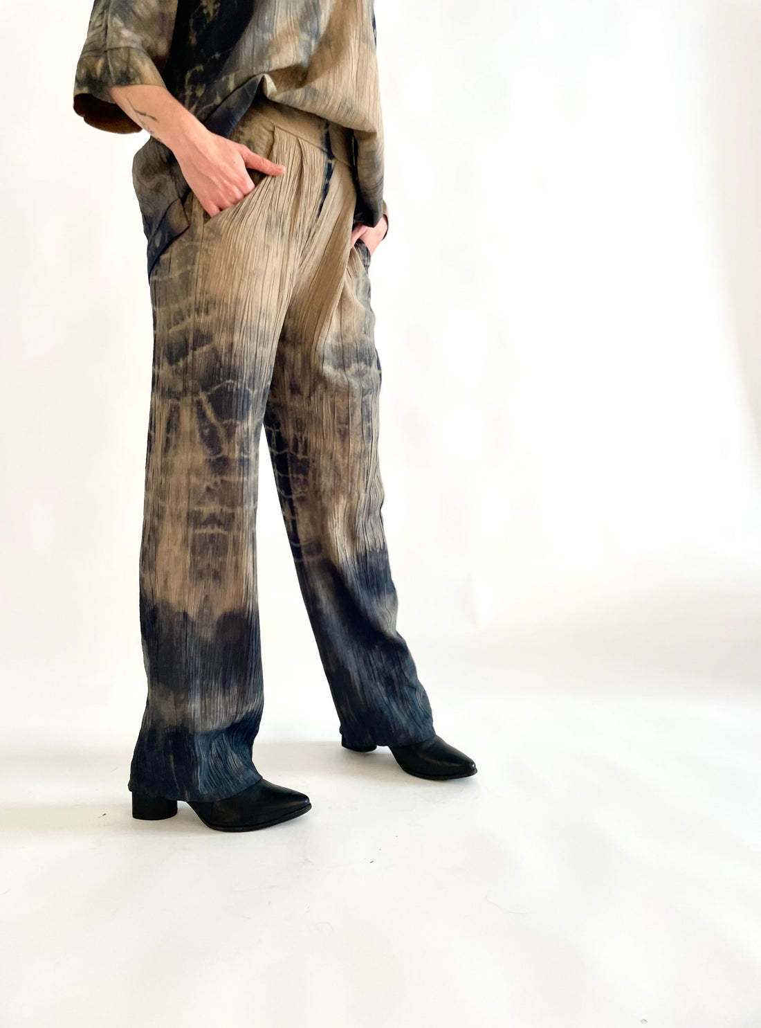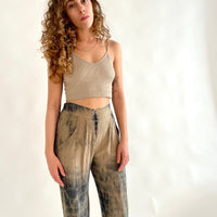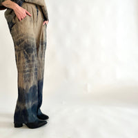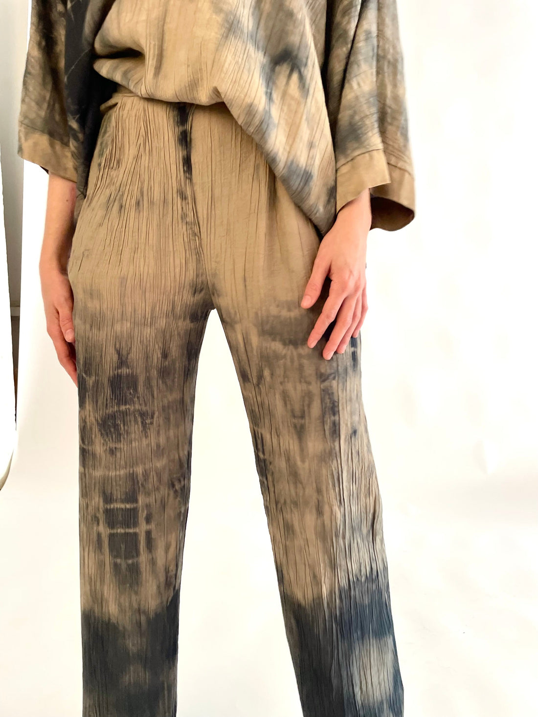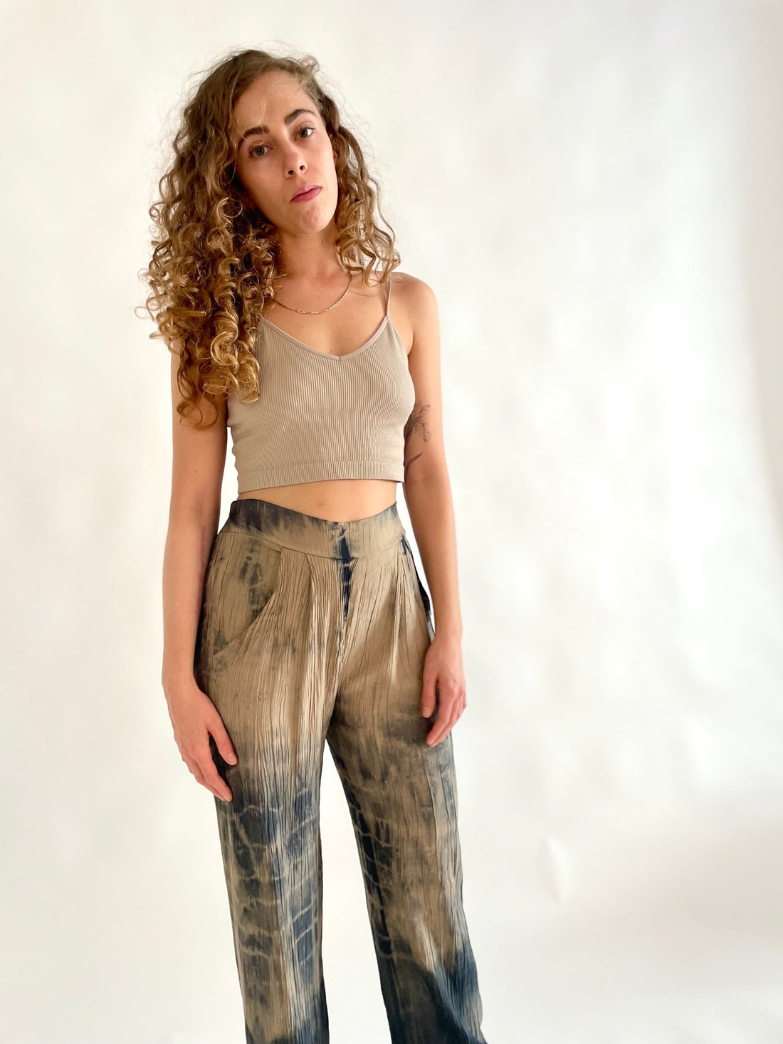 The circumference of the pants - measured from the pants waistband. Around the entire belt area up to the exact same point.
