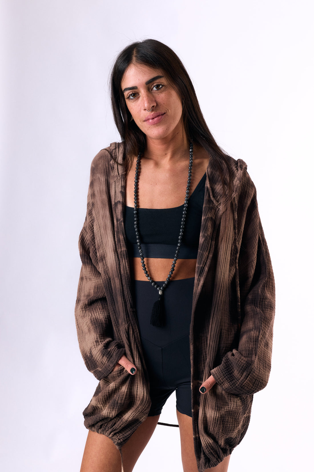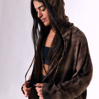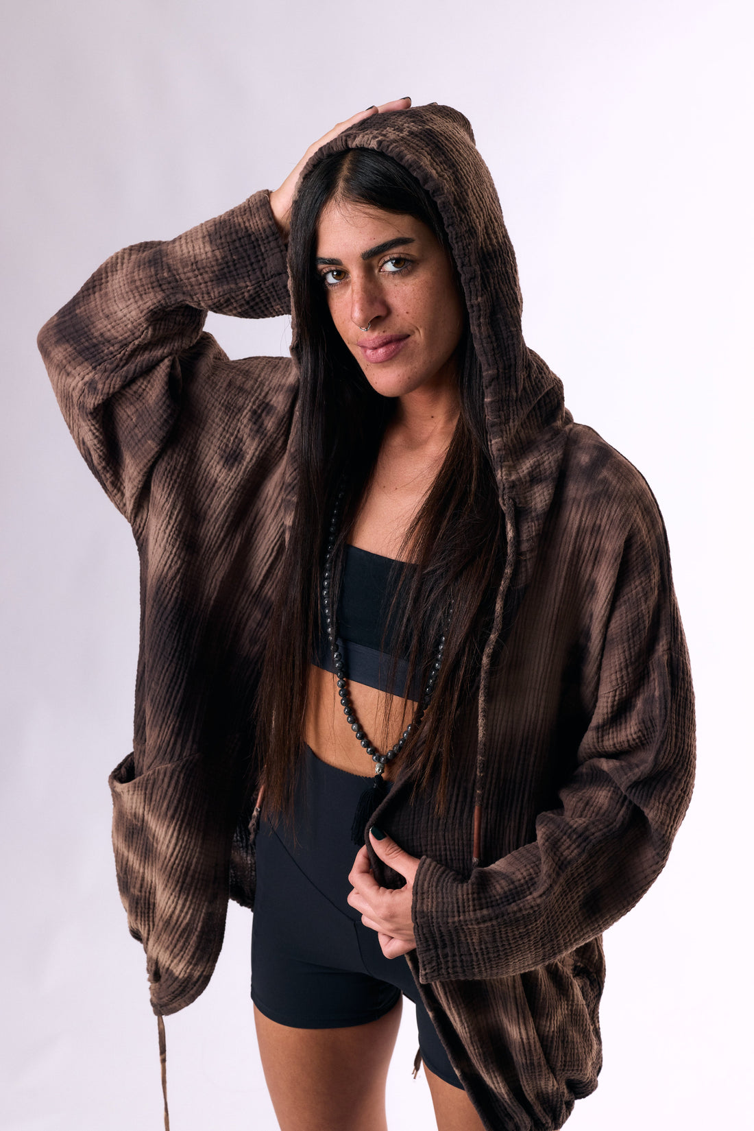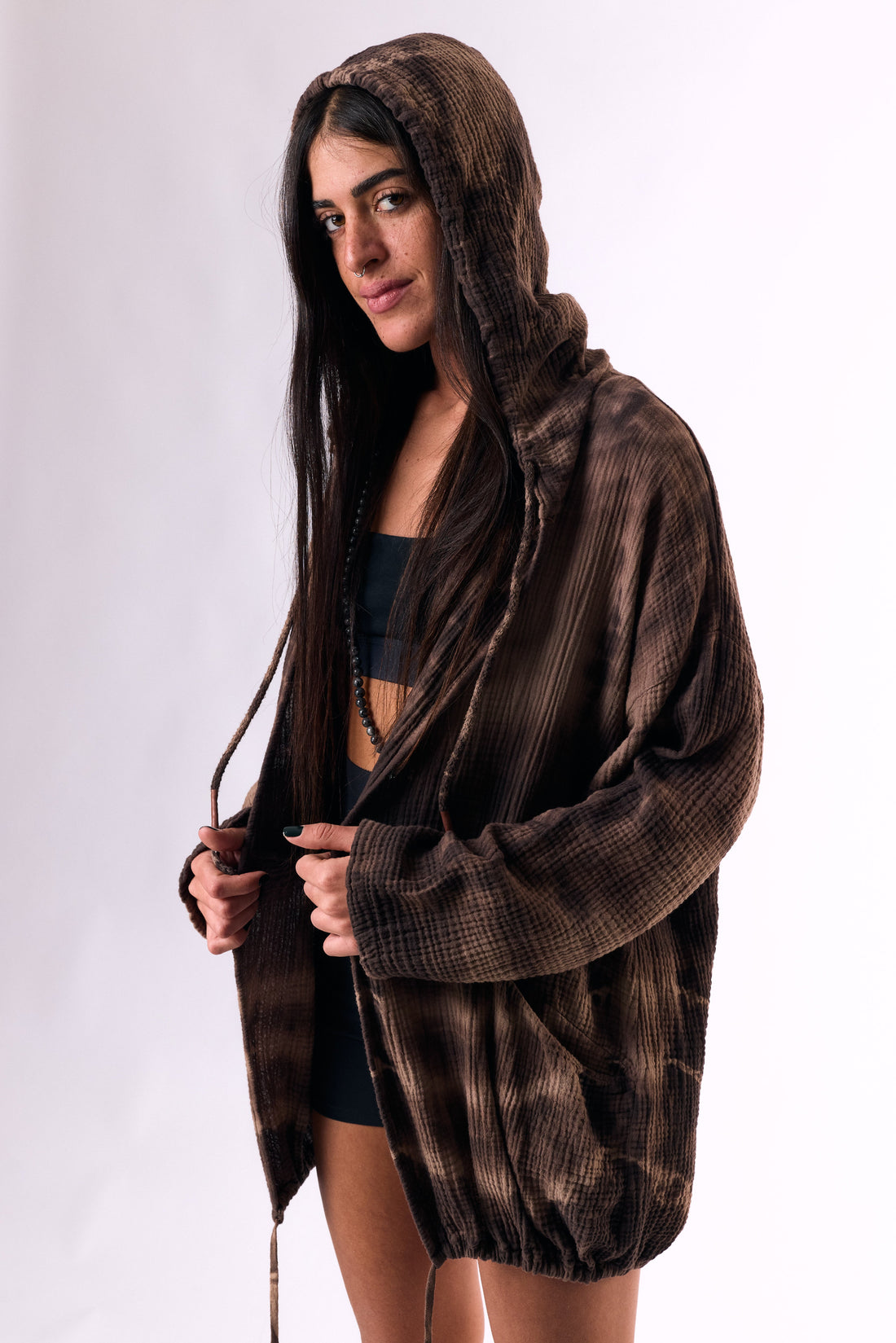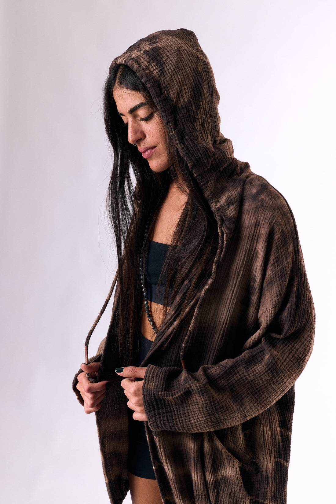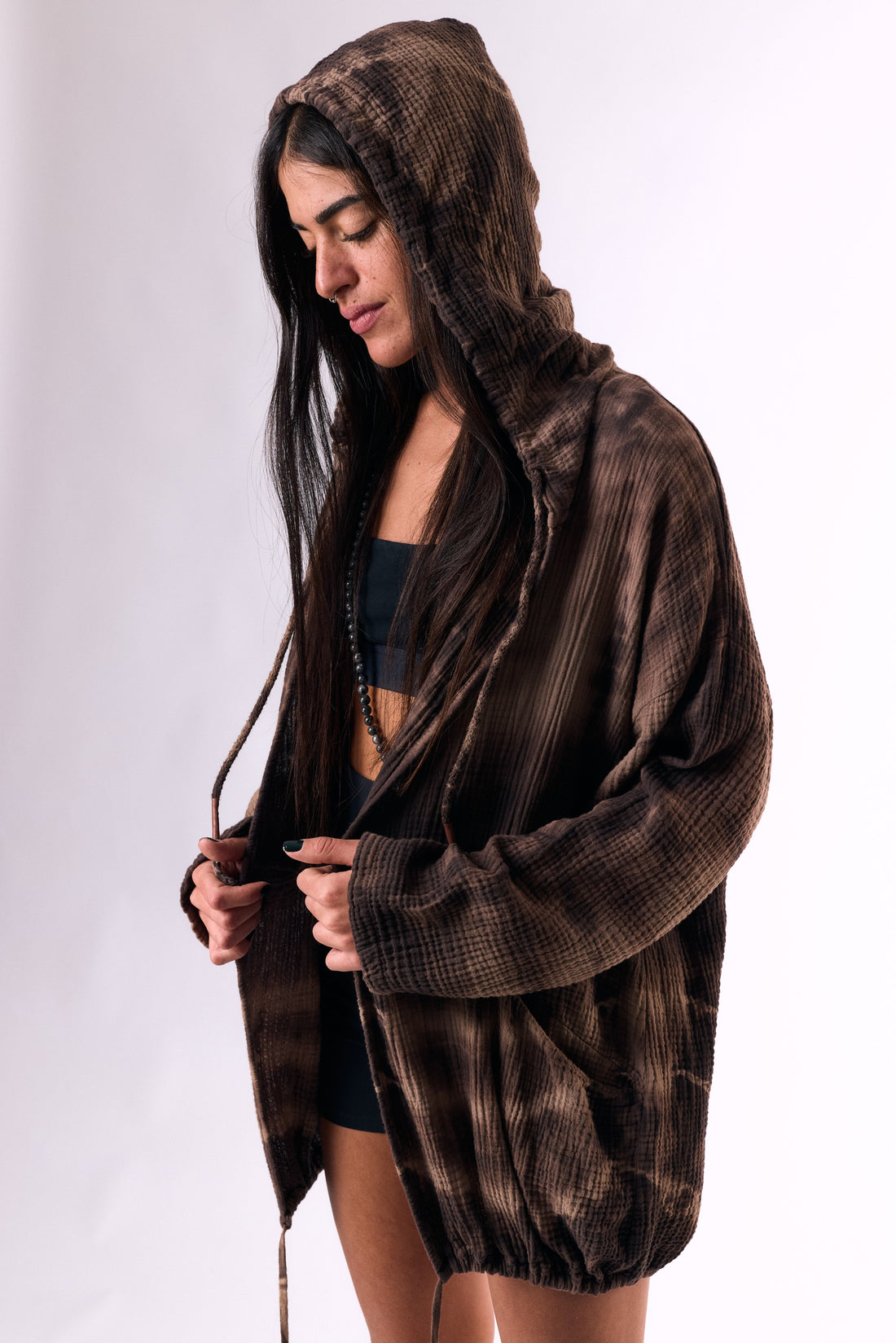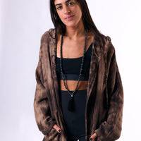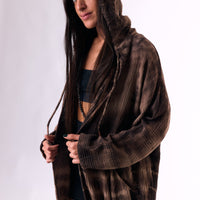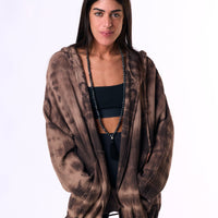 a hooded cotton cardigan in a handmade dye