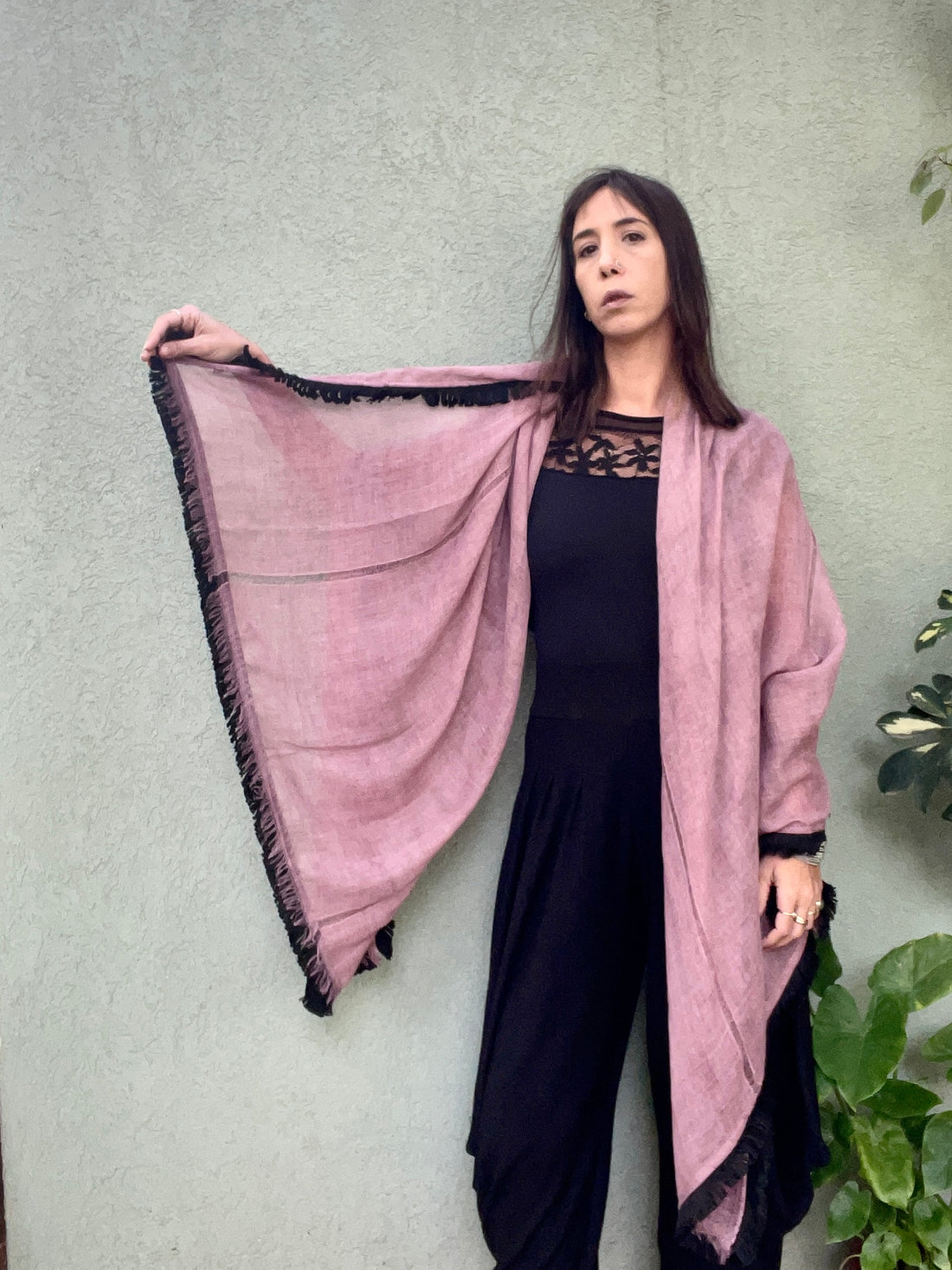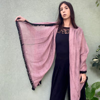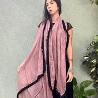 צעיף רחב וארוך בסיומת פרנז שחור
