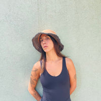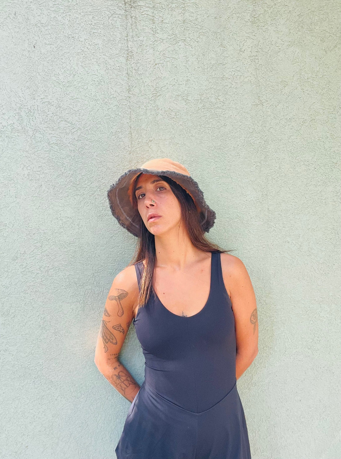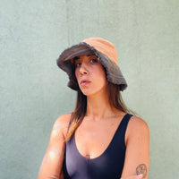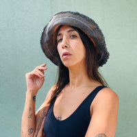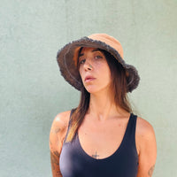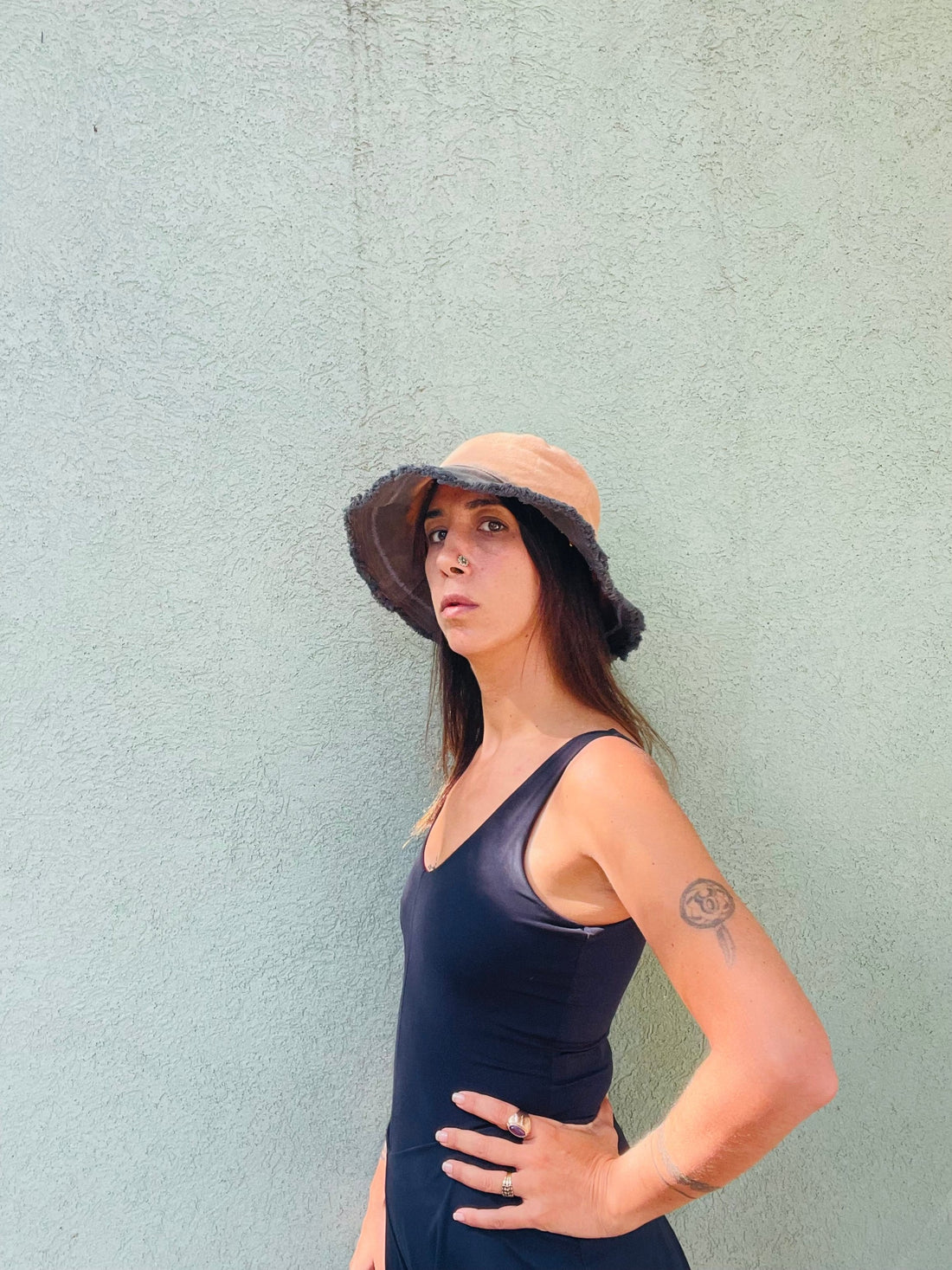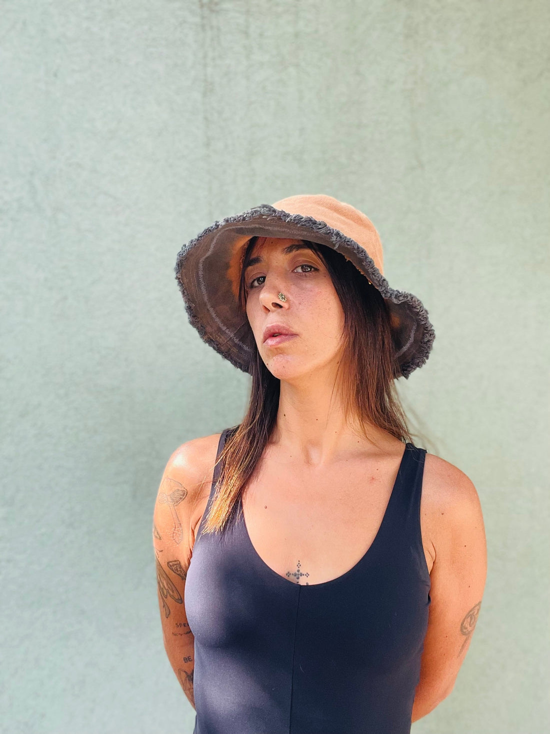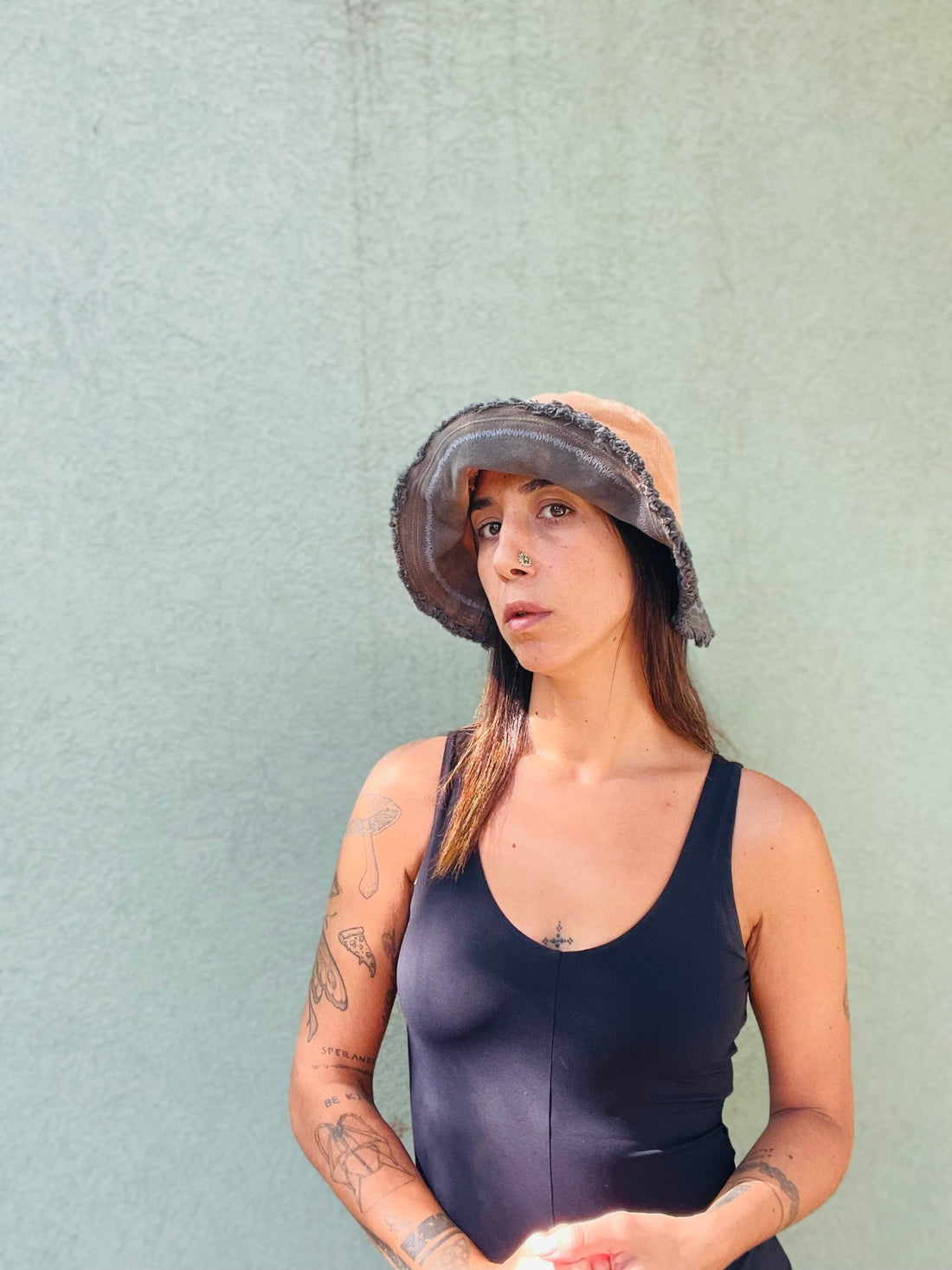 כובע קייצי בגוונים אוקר ואפור מעוצב עם רקמות עדינות