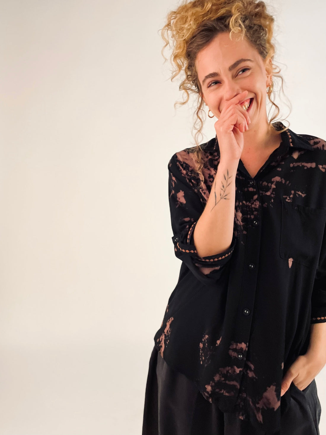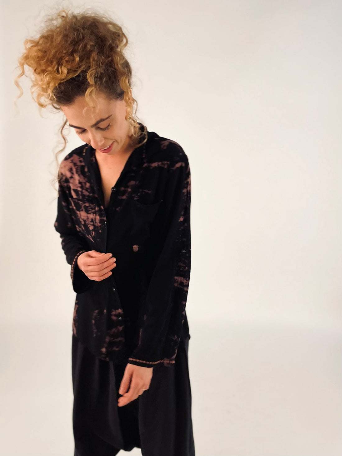 מעוצבת עם רקמות עדינות, צבועה בגווני שחור ובלאש