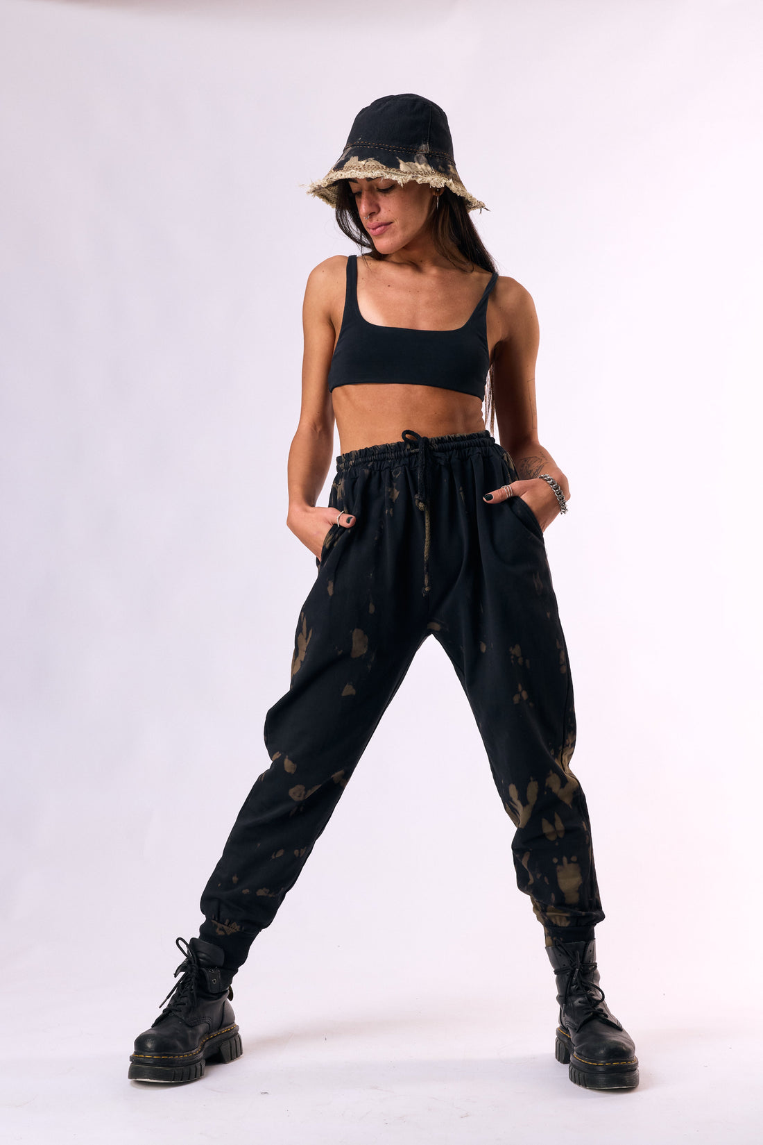 מכנסיים בגזרת ג'וגר עשויים בד כותנה ג'רסי איכותי