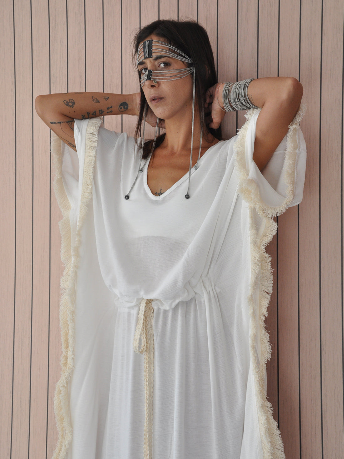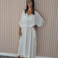 שמלת גלביה בגזרה אוורירית עשויה כותנה דקיקה וקלה