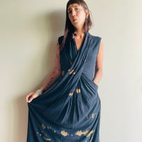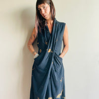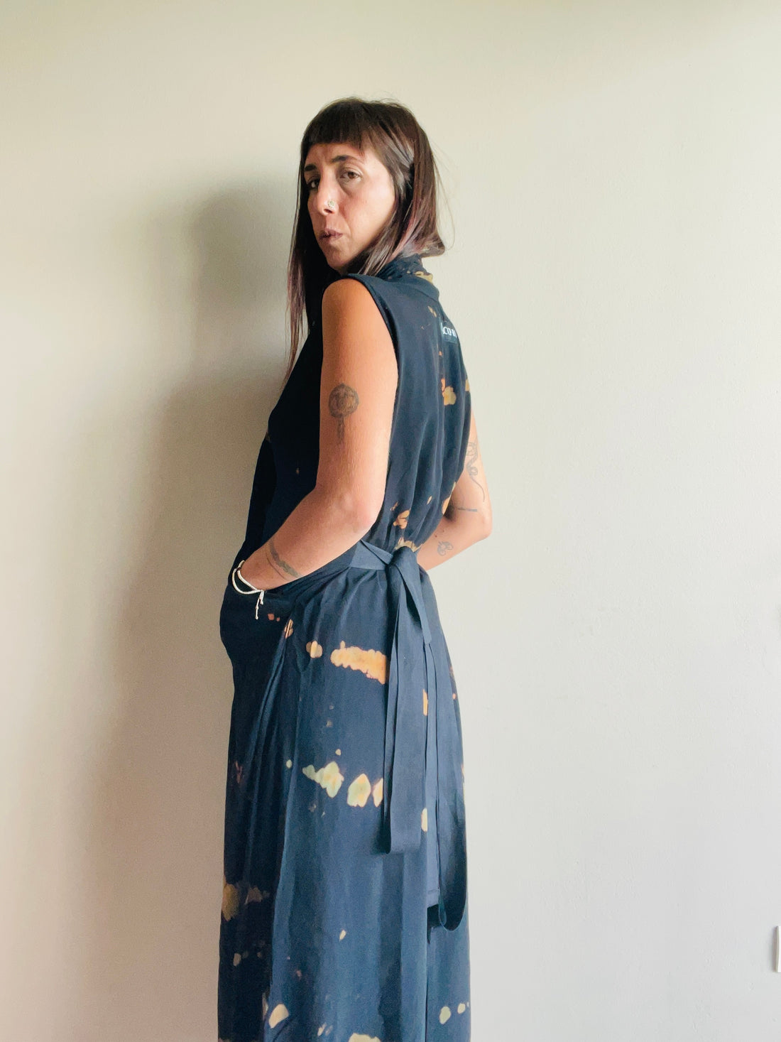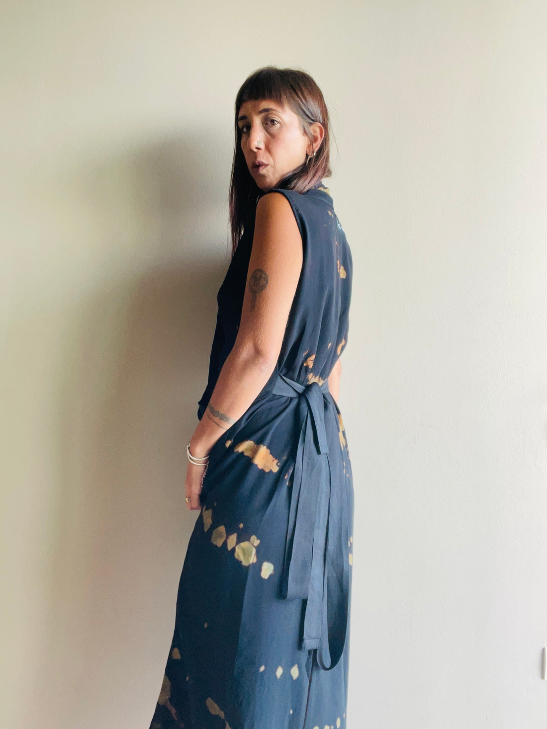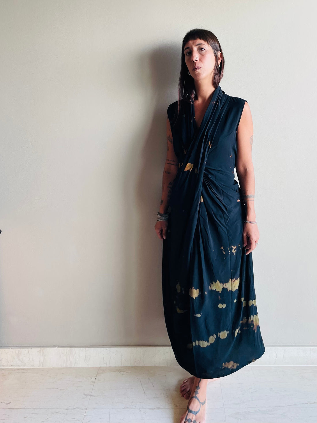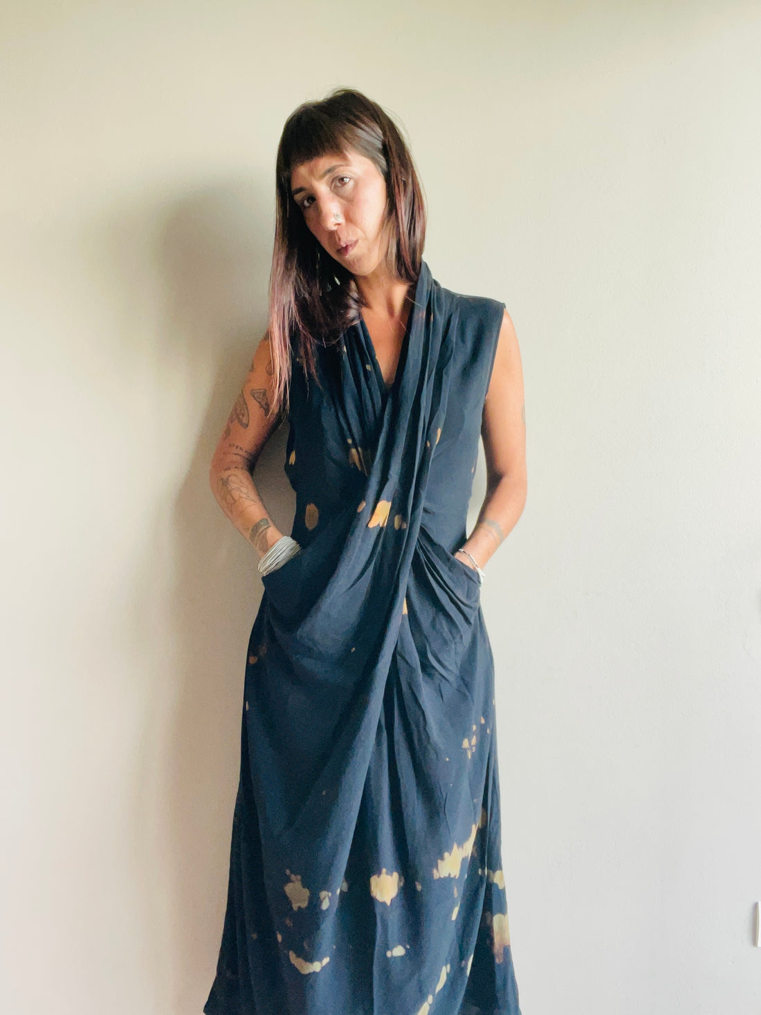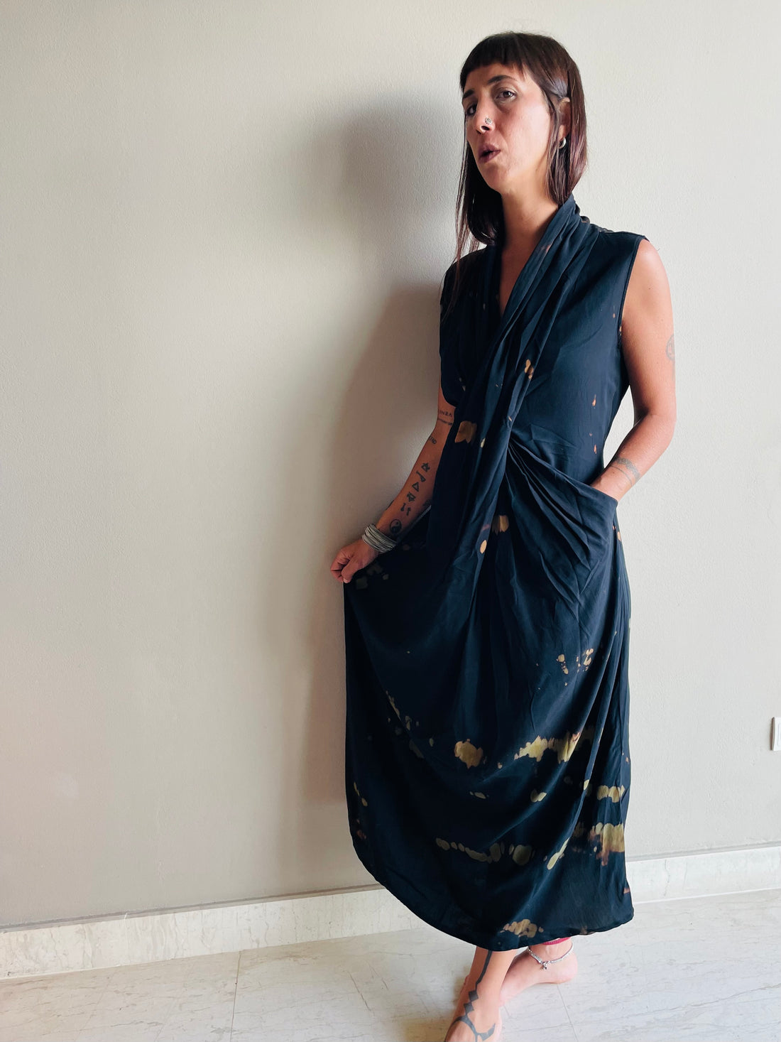 שמלה נשית, עשירה בבד בגזרה פנטסטית. מחמיאה ומטשטשת את איזור הבטן. עשויה בד ויסקוזה רך, נעים ונשפך.עם כיסים בצד ושסע סקסי בגב השמלה.